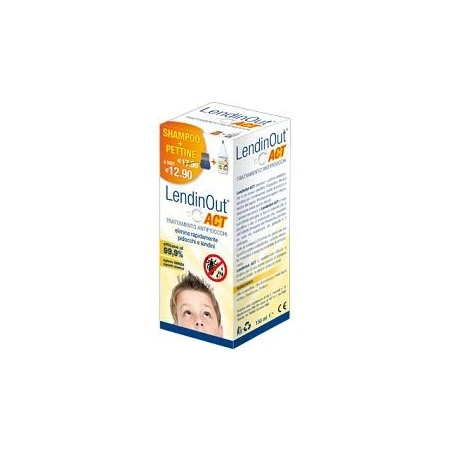 Utilizzare il pettine antipediculosi LendinOut ACT (incluso nella confezione) per verificare la presenza di pidocchi e/o lendini. Applicare una dose di prodotto sui capelli asciutti, sufficiente a coprire in modo uniforme tutto il cuoio capelluto. Prestare maggiore attenzione nelle zone più critiche come collo e dietro le orecchie. Massaggiare delicatamente in modo da distribuire il prodotto su tutti i capelli. Lasciare agire per 10 – 15 minuti. Lavare abbondantemente con acqua fino a creare la schiuma. Risciacquare accuratamente fino alla completa rimozione di tutto il prodotto. Prima di asciugare i capelli utilizzare il pettine antipediculosi pettinando dal cuoio capelluto alle punte. Una volta terminata l’ operazione lavare attentamente il pettine utilizzando cotone o ovatta al fine di evitare re-infestazioni. Ripetere il trattamento con le stesse modalità dopo 7 – 9 giorni.
